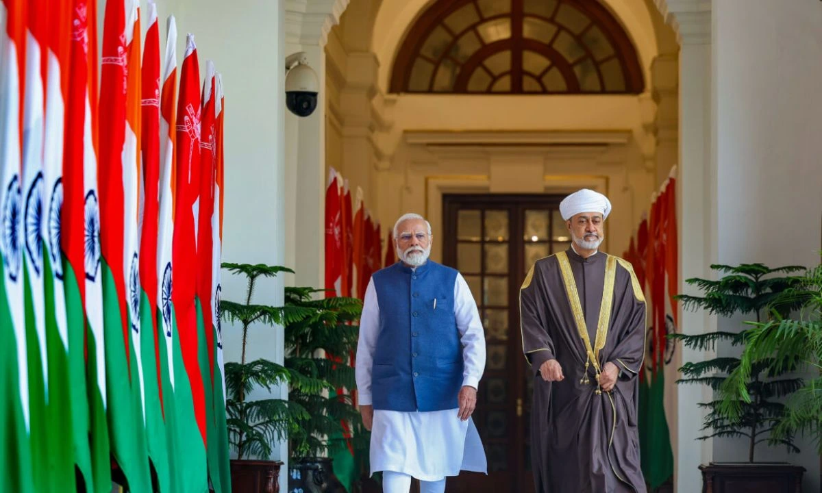 भारत दौरे पर आए ओमान के सुल्तान हैथम बिन तारिक और प्रधानमंत्री नरेन्द्र मोदी के बीच व्यापार और निवेश समेत तमाम क्षेत्रों में द्विपक्षीय सहयोग बढ़ाने पर चर्चा हुई। हैथम बिन तारिक शुक्रवार को राजकीय यात्रा पर दिल्ली पहुंचे थे। खाड़ी देश के शीर्ष नेता के तौर पर ये उनकी पहली भारत यात्रा है। भारत-ओमान रणनीतिक साझेदारी को बढ़ावा देते हुए प्रधानमंत्री नरेन्द्र मोदी ने आज हैदराबाद हाउस में ओमान के सुल्तान का स्वागत किया। भारत ने दोनों देशों के बीच राजनयिक संबंधों को लेकर हैथम बिन तारिक के दौरे को मील का पत्थर बताया है। ओमान के सुल्तान की 26 साल बाद भारत की राजकीय यात्रा को भारत ने दोनों देशों के संबंधों के लिए ऐतिहासिक दिन बताया।