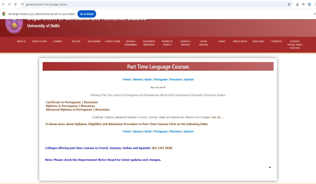 डीयू की आधिकारिक वेबसाइट के अनुसार, डीयूसोल आपको फ्रैंच, इटालियन, जर्मन, पोर्तुगीस, रोमन और स्पैनिश भाषा में सर्टिफिकेट, डिप्लोमा और एडवांस डिप्लोमा कोर्स उपलब्ध करवाता है. दरअसल, डीयूसोल की तरफ से ये कोर्स जर्मेनिक एंड रोमांस विभाग व ईस्ट एशियन स्टडीज विभाग द्वारा प्रमाणित होते हैं. डीयूसोल फॉरेन लैंग्वेज डिप्लोमा कोर्स के लिए एडमिशन प्रोसेस पूरी तरह से ऑनलाइन होगा. खास बात यह है कि कोई भी स्टूडेंट इन डिप्लोमा कोर्स में एडमिशन के लिए अप्लाई कर सकता है. जैसे, DU समेत दूसरी यूनिवर्सिटी के स्टूडेंट भी इन कोर्स में एडमिशन ले सकते हैं.