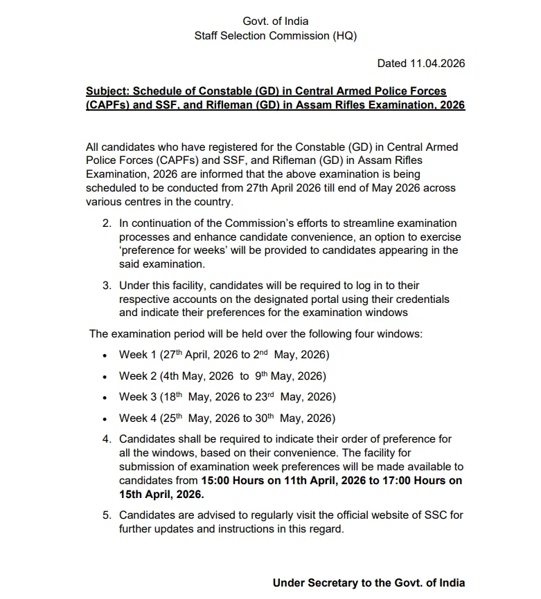कैंडिडेट्स 11 अप्रैल, 2026 को 15:00 बजे से 15 अप्रैल, 2026 को 17:00 बजे तक इस ऑप्शन को एक्सेस कर सकते हैं. इस दौरान, कैंडिडेट को ऑफिशियल पोर्टल पर अपने अकाउंट से यह प्रोसेस पूरा करना होगा. कमीशन ने उम्मीदवारों को सलाह दी है कि वे एग्जाम प्रोसेस से जुड़े लेटेस्ट अपडेट, इंस्ट्रक्शन और किसी भी अनाउंसमेंट के लिए रेगुलर तौर पर ऑफिशियल SSC वेबसाइट देखते रहें.