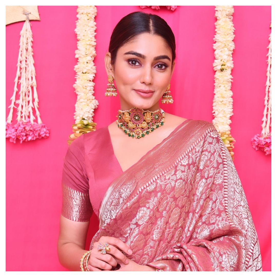सना मकबूल इस वाइव्रेंट पिंक साड़ी में बहुत खूबसूरत नजर आ रही हैं. इस ऑर्गेंजा साड़ी को उन्होंने सिंपल मैचिंग ब्लाउज के साथ पहना. वहीं, सना ने गोल्डन हाई हील्स, मैचिंग चोकर, रिंग, कंगन, मिनिमल मेकअप और खुले बालों के साथ अपने लुक को पूरा किया.