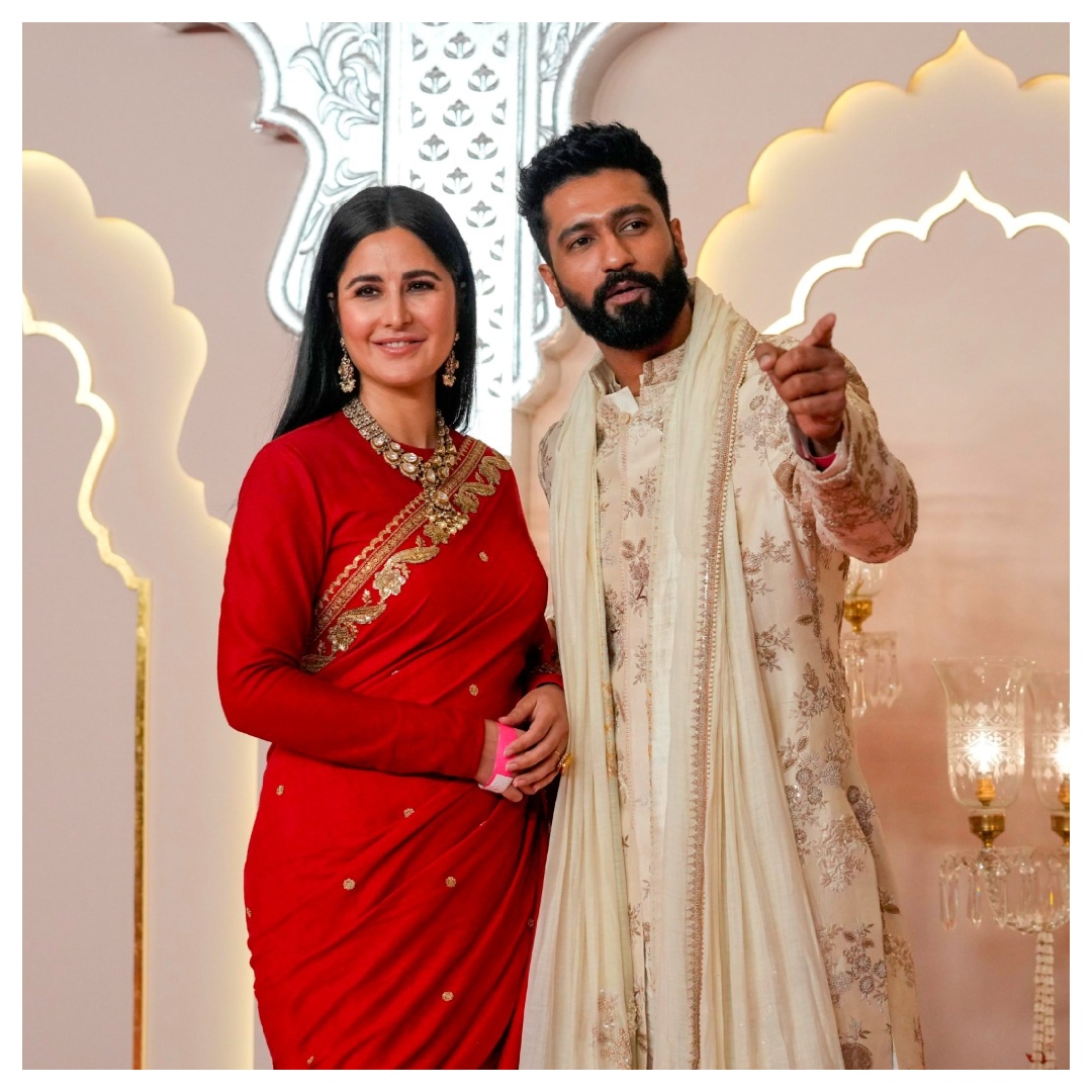 एक्ट्रेस कैटरीना कैफ अनंत अंबानी और राधिका मर्चेंट की शादी में रेड कलर की साड़ी में बेहद रॉयल नजर आ रही थीं. वहीं, उनके पति विक्की कौशल ऑफव्हाइट कलर की शेरवानी में वाइफ को कॉम्प्लीमेंट करते नजर आए.