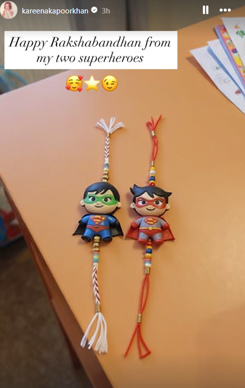 करीना कपूर खान ने अपने सोश मीडिया अकाउंट इंस्टाग्राम से एक तस्वीर शेयर की है. उनका ये पोस्ट उनके दो सुपरहीरो बेटे यानी तैमूर और जहांगीर के तरफ से किया गया. इस फोटो के साथ उन्होंने लिखा कि मेरे दोनों सुपरहीरो की ओर से हैपी रक्षाबंधन. इसके साथ ही परिणीति चोपड़ा ने अपने भाईयों को फर्स्ट बेबीज बताते हुए रक्षाबंधन का शुभकामना दी है.