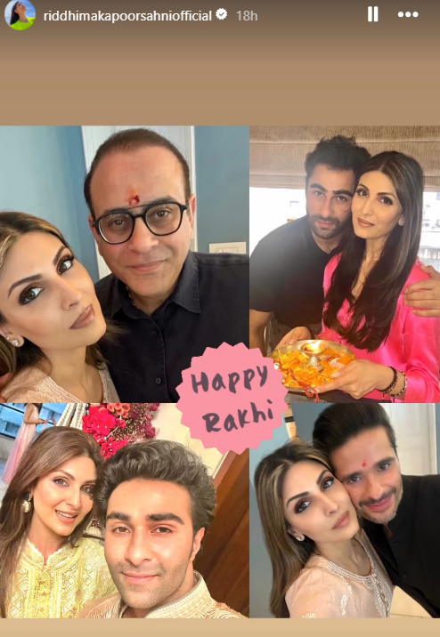 रणबीर कपूर की बहन रिद्धिमा कपूर साहनी ने भा बड़े धूमधाम के साथ राखी का त्योहार मनाया है. इस दौरान दोनों पिंक आउटफिट में ट्विनिंग करते हुए एक फोटो शेयर किया है और लिखा है कि हैप्पी राखी और साथ ही अपने और कुछ भाइयों के साथ एक कोलाज बनाकर उन्हें राखी के लिए विश किया है.