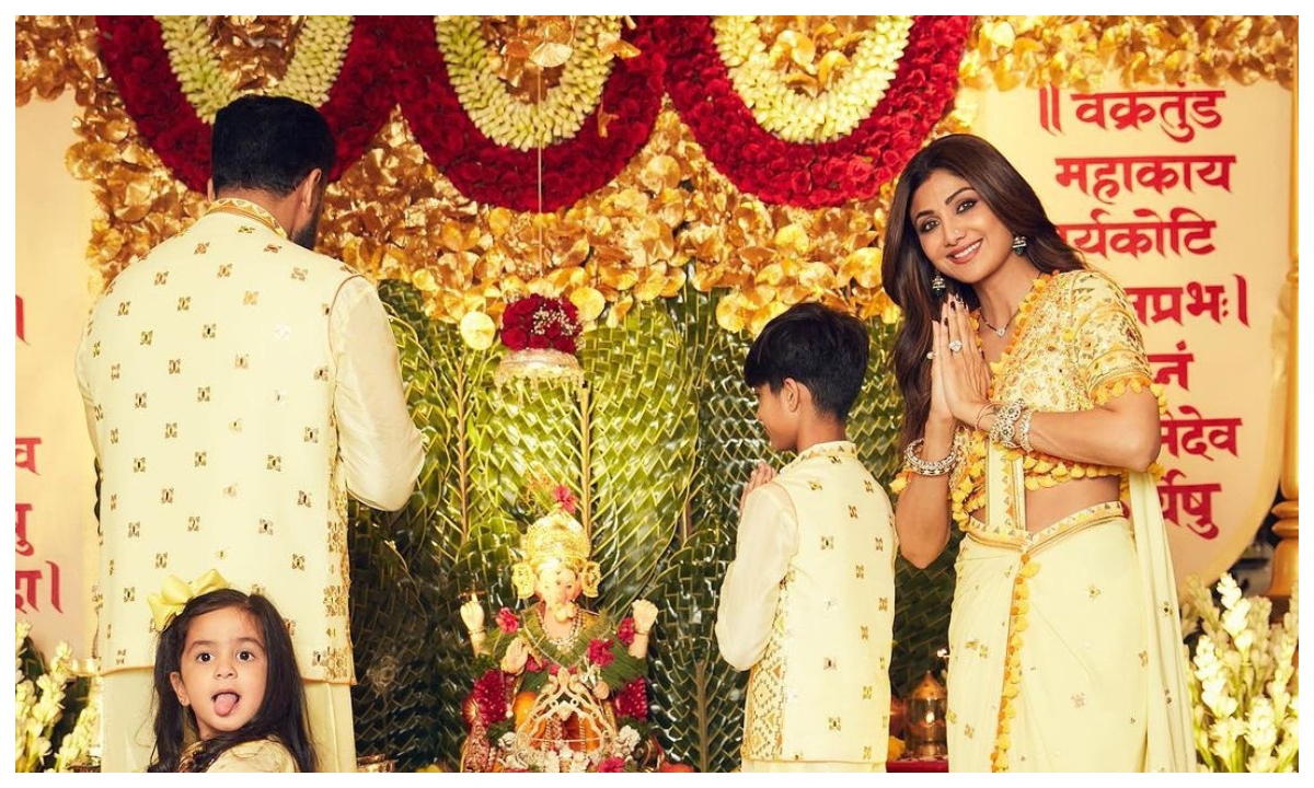 इस लिस्ट में सबसे पहले नाम आता है शिल्पा शेट्टी कुंद्रा (Shilpa Shetty Kundra) का जो हर साल अपने घर में गणपति बप्पा का धूम धाम से स्वागत करती हैं. सोशल मीडिया पर उनकी पूजा करते हुए कई तस्वीरें और वीडियोज खूब वायरल भी होती हैं.