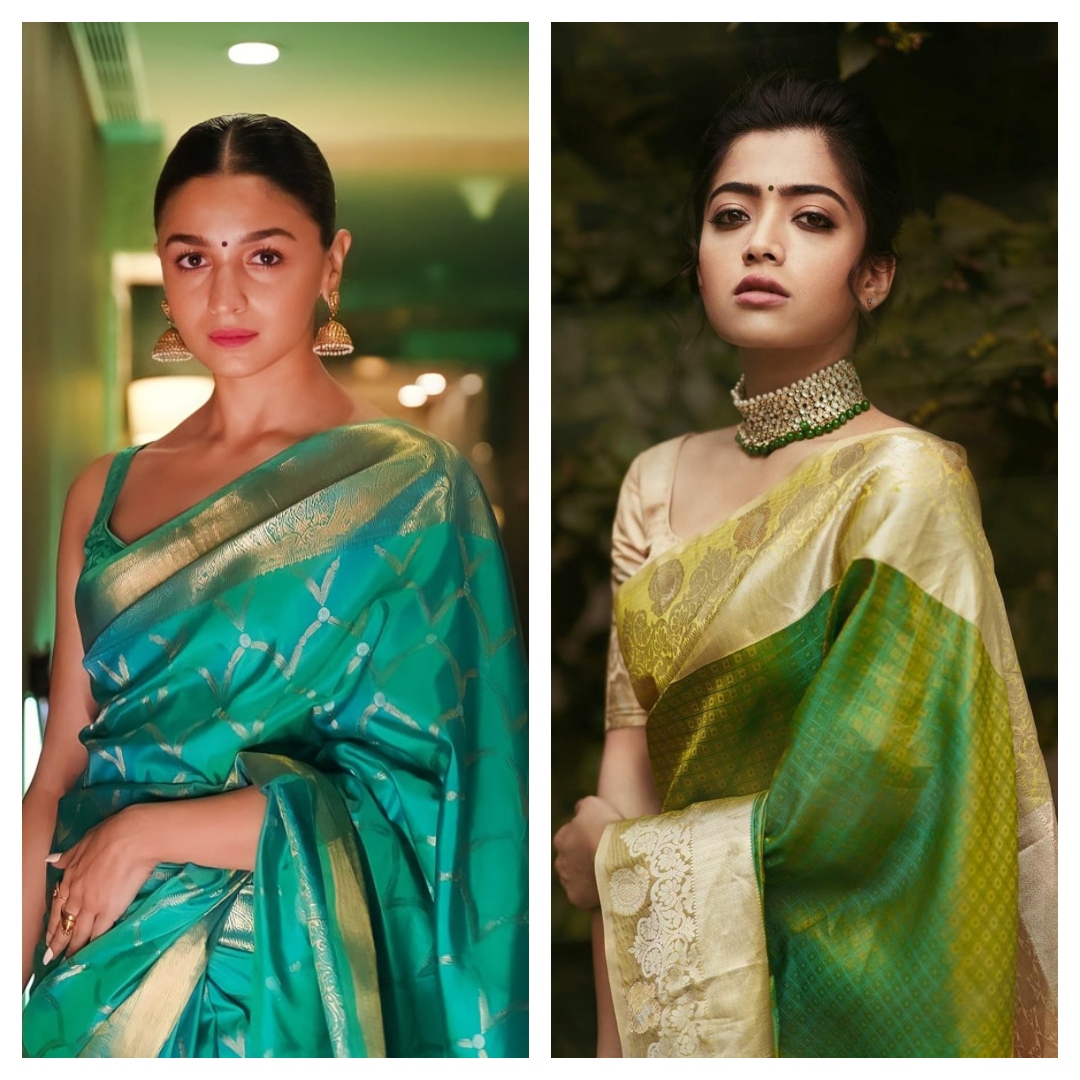 आलिया भट्ट की यह ग्रीन कलर की सिल्क साड़ी हरियाली तीज के लिए एक बेस्ट ऑप्शन है. इस लाइट वेट साड़ी में वह बहुत क्लासी लग रही हैं. इस साड़ी को आप आलिया की ही तरह गोल्डन छुमके, पार्टी मेकअप और गजरे के साथ स्टाइल कर सकती हैं.