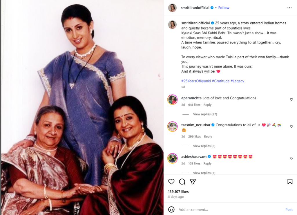 राजनीति छोड़ एक्टिंग में एक बार फिर लक आजमा रही हैं स्मृति ईरानी, 25 साल बाद वापसी; इस दिन होगा शो रिलीज