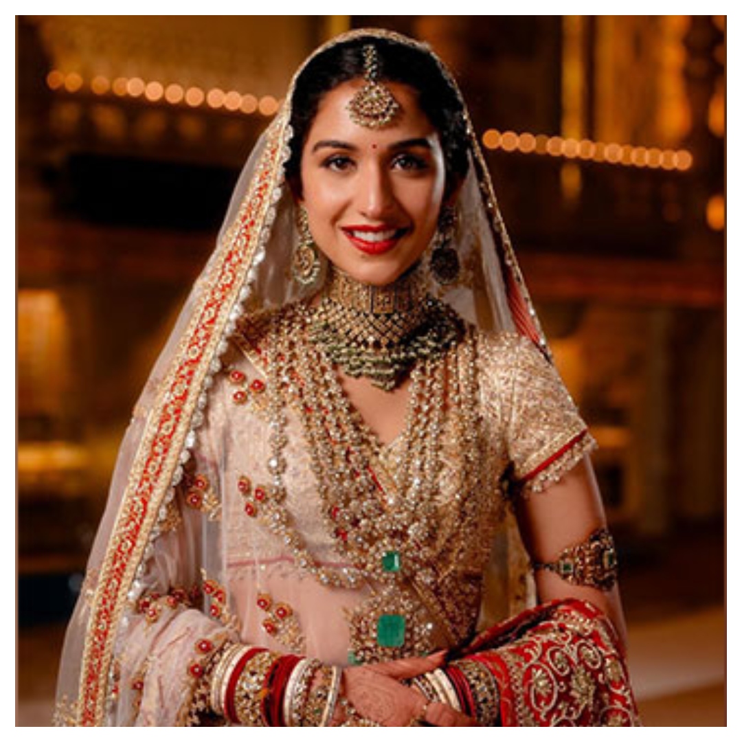 अपनी शादी के दिन राधिका मर्चेंट किसी अप्सरा से कम नहीं लग रही थीं. उनके लहंगे में लाल रंग का बॉर्डर है. इस लहंगे पर हाथ से कढ़ाई की गई है. सीक्वन, स्टोन और रेशम का काम राधिका के आउटफिट पर साफ नजर आ रहा है. राधिका मर्चेंट के लुक में शाही जूलरी ने चार चांद लगाने का काम किया.