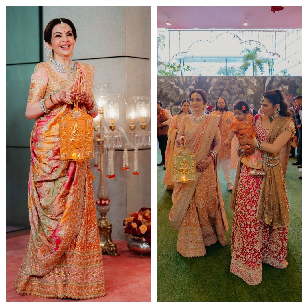 बेटे की शादी में नीता अंबानी ने मल्टीकलर साड़ी पहनी थी, जिसमें वह हमेशा की तरह बेहद खूबसूरत नजर आईं.