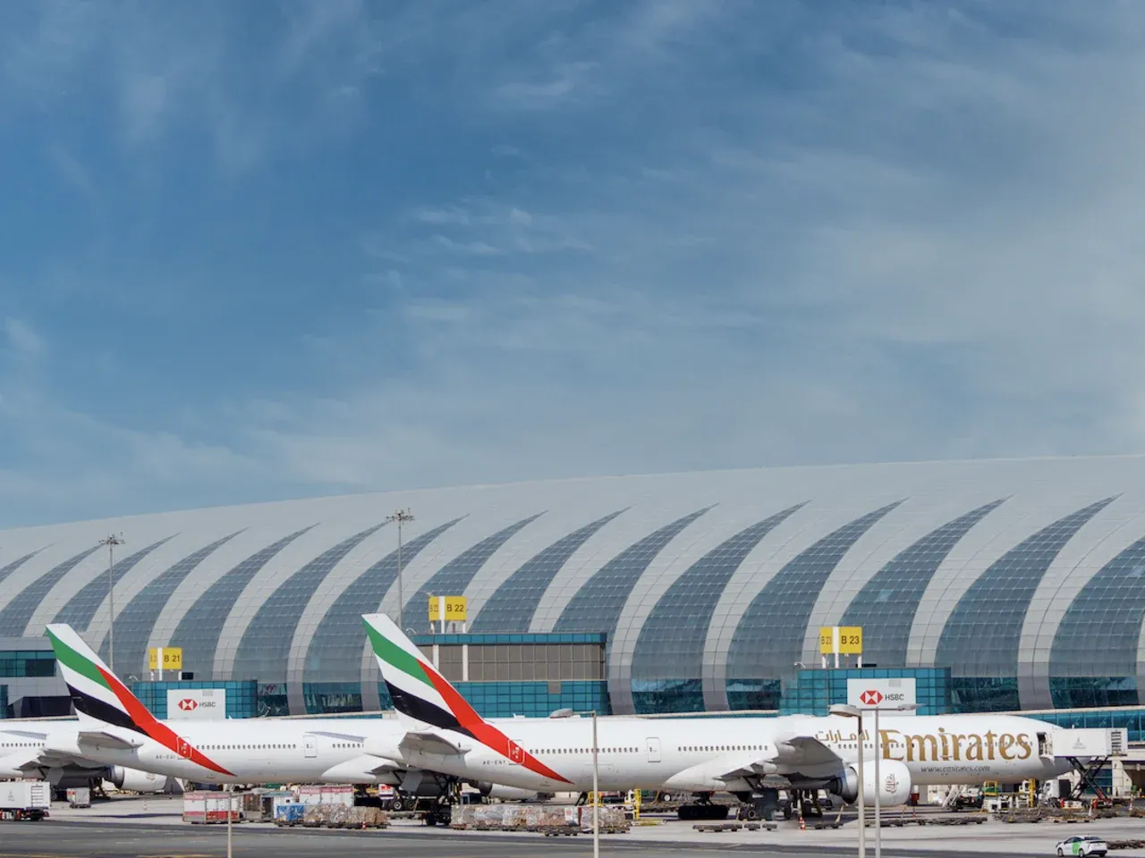 Authorities confirm that two drones fell in the vicinity of Dubai International Airport (DXB) a short while ago, resulting in minor injuries to two Ghanaian nationals and one Bangladeshi national, and moderate injuries to one Indian national. Air traffic is operating as normal.