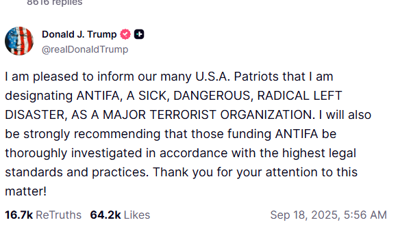 Home Latest News & Updates क्या है ANTIFA जिसे ट्रंप ने घोषित किया आतंकवादी संगठन, करीबी चार्ली किर्क की हत्या के बाद फैसला