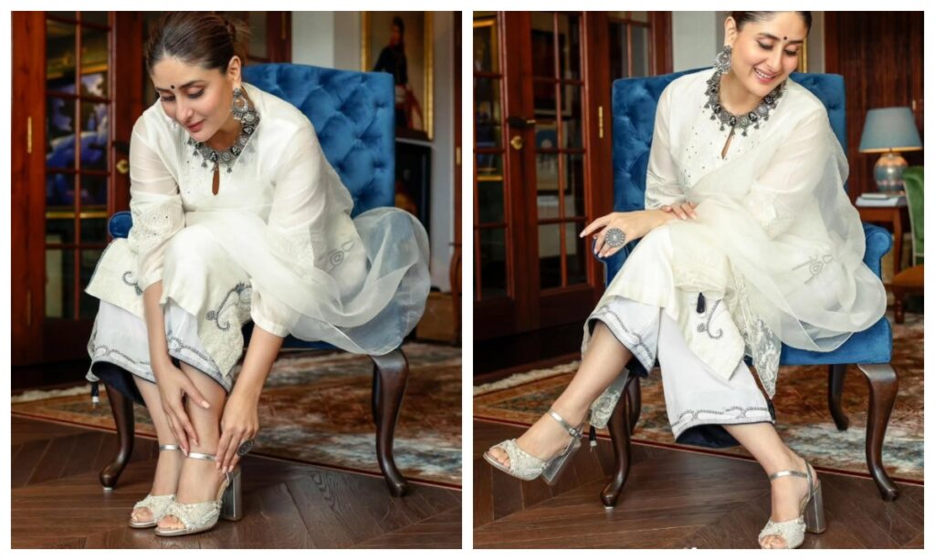 करीना कपूर खान इस व्हाइट कलर के सूट सेट में बहुत ही प्यारी लग रही हैं. उन्होंने अपने लुक को कम्पलीट करने के लिए मैचिंग कलर की हील्स पहनी.