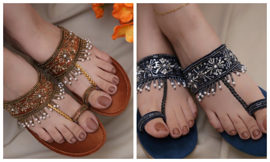 अगर आप भी अपने ब्राइडल आउटफिट के लिए फुटवियर की तलाश कर रही हैं इस तरह के चप्पल भी खरीद सकती हैं. वेडिंग डे पर ये आपको कंफर्टेबल भी रखेंगी.