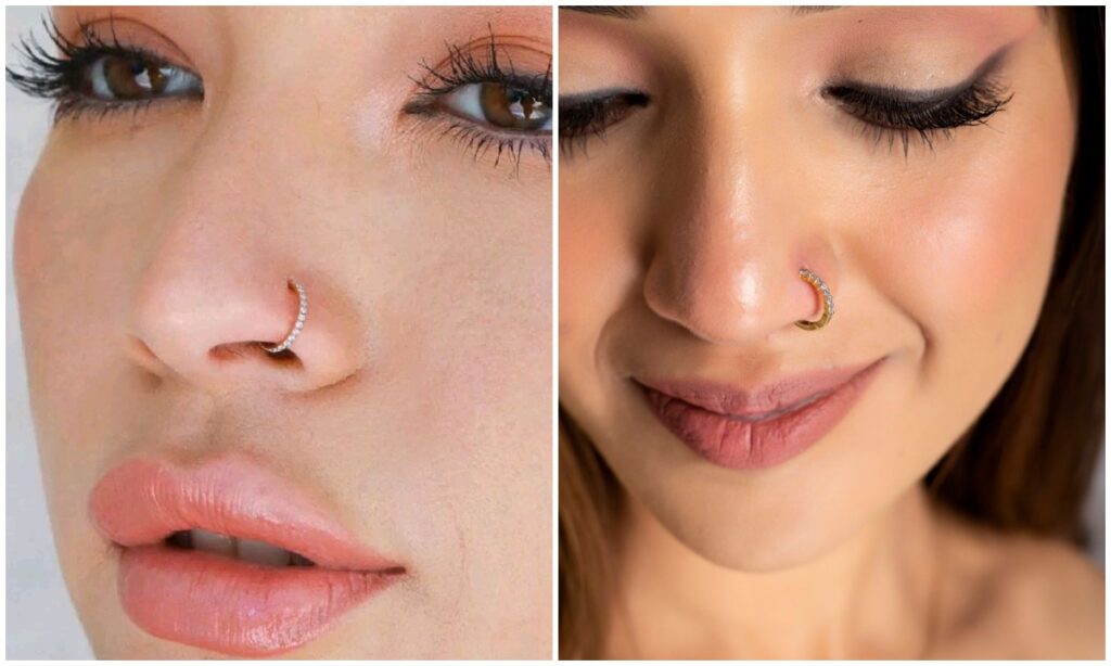 सॉफ्ट हूप नोज़ रिंग जिसमें छोटे मोती या फिर डायमंड लगे होते हैं. आप इस तरह की नोज़ रिंग को एथनिक के साथ साथ इंडो-वेस्टर्न या फिर फ्यूज़न लुक के साथ भी कैरी कर सकती हैं.