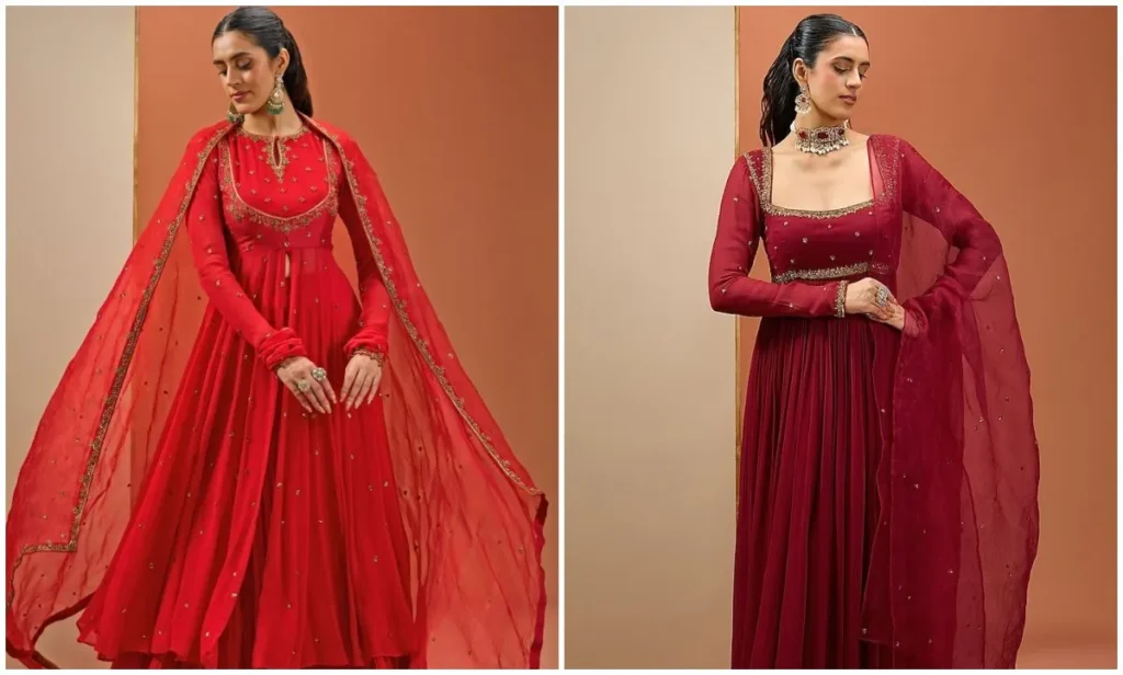 जॉर्जेट फैब्रिक में बने फ्लोई अनारकली कुर्ता सेट बहुत ही एलिगेंट लुक देते हैं. आप प्रिंटेड जॉर्जेट सूट भी काफी खूबसूरत दिखते हैं. दुपट्टा और मैचिंग पैंट्स के साथ इसका फ्लेयर्ड लुक फेस्टिवल्स के लिए बेहतरीन है. झुमके और ट्रेडिशनल सैंडल्स के साथ आप इस सूट को स्टाइल कर सकती हैं.