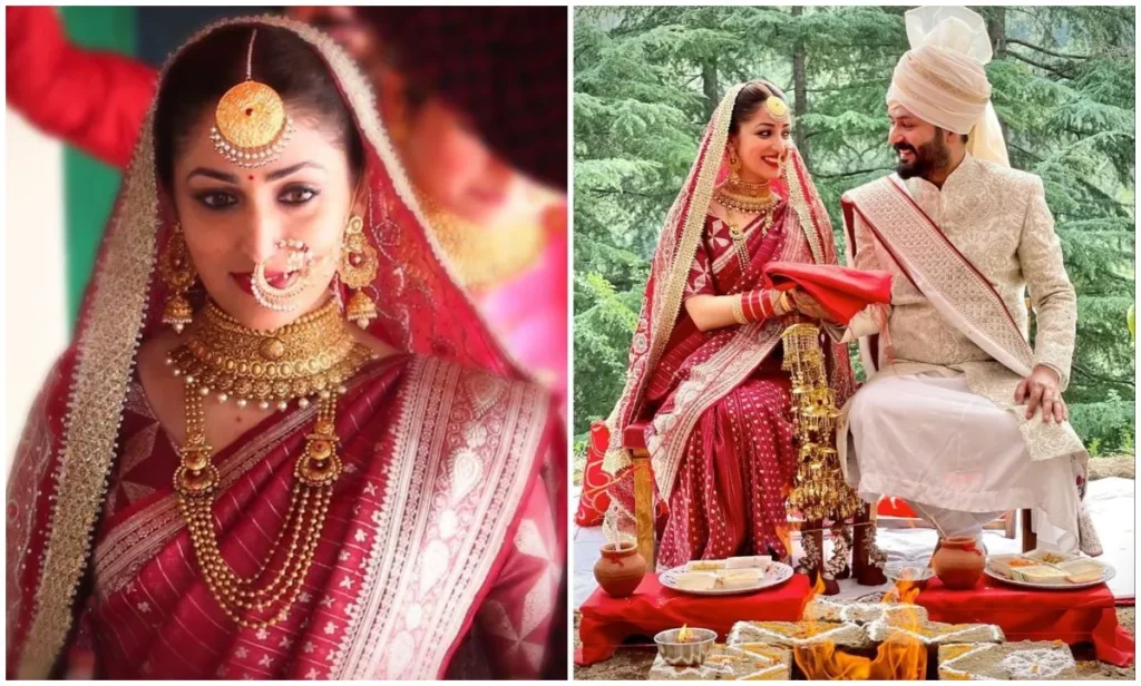 यामी गौतम का ब्राइडल लुक सबसे प्यारा रहा. उन्होंने अपनी शादी के दिन मां की पुरानी रेशमी साड़ी और दादी का दुपट्टा कैरी किया. बस एक स्टेटमेंट चोकर हार और सोने की चूड़ियां पहनकर एक्ट्रेस ने साबित किया कि अपने ट्रेडिशनल से जुड़े रहना कितना जरूरी होता है.