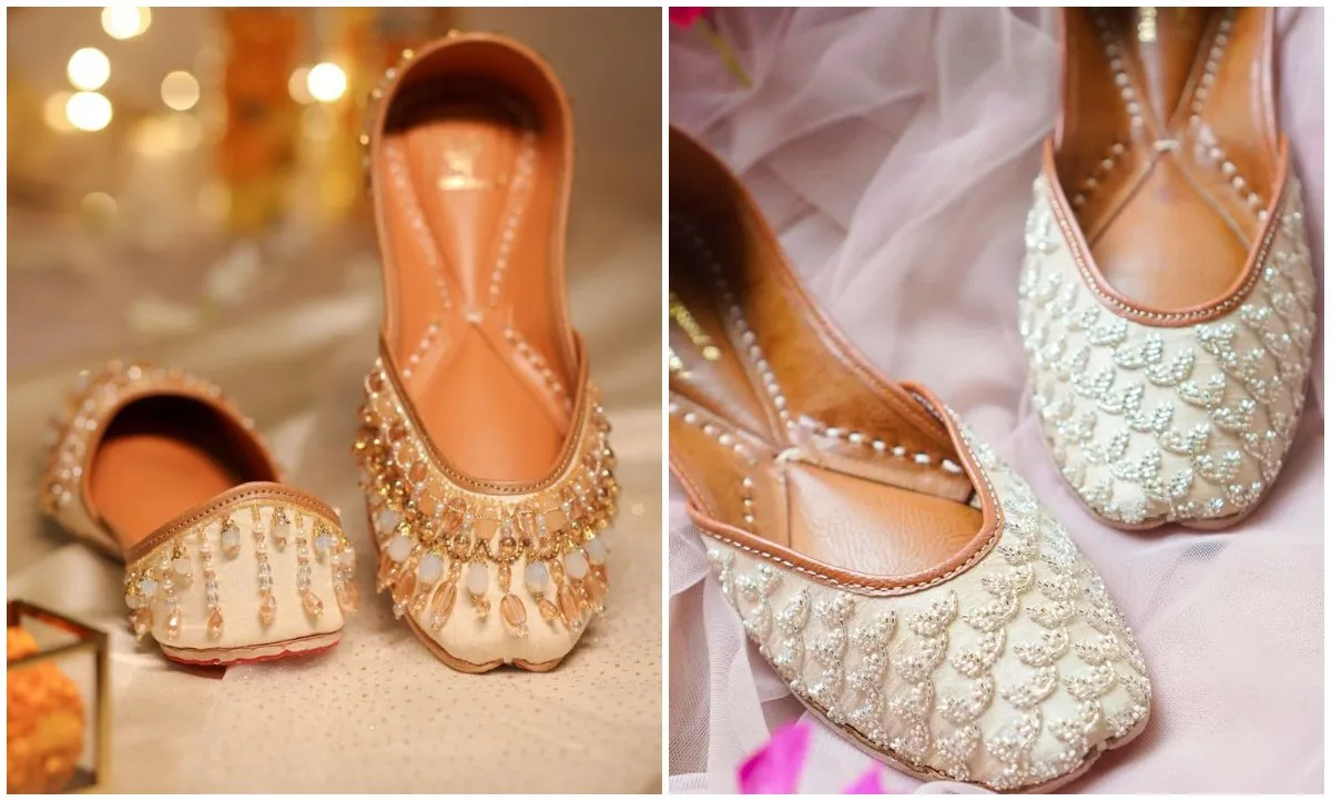छोटे मोती और चमकदार सीक्विन से सजी ये पंजाबी जूतियां लाइट में रोशनी में खूब चमकती हैं. खास मौकों के लिए इस तरह की जूती बेस्ट चॉइस हैं. आप लहंगे, सूट या साड़ी के साथ भी इस तरही की बीडेड जूतियों को स्टाइल कर सकती हैं.