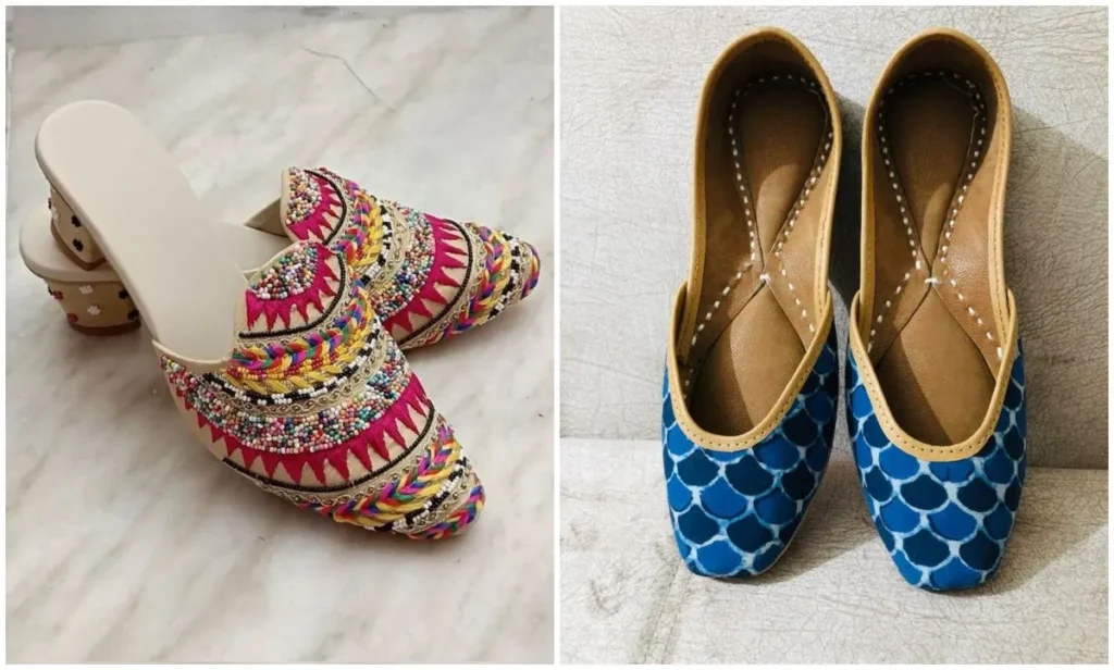 चांदनी चौक, जयपुर और अमृतसर की गलियों में आसानी से मिलने वाली ये ब्लॉक-प्रिंटेड जूतियां हर लड़की के कलेक्शन में होनी ही चाहिए. लकड़ी के ब्लॉक्स से बने फूल पत्तियों के पैटर्न इन जूतियों को बहुत ही ट्रेंडी और यूनिक लुक देते हैं. आप इन्हें कैजुअल वियर के साथ भी पहन सकती हैं.