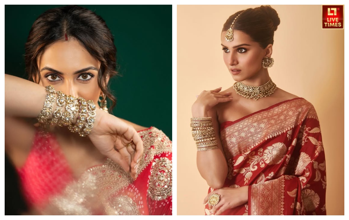 Home Lifestyle लाल साड़ी के साथ पहने ऐसे बैंगल सेट, आपकी खूबसूरत में लग जाएंगे चार चांद