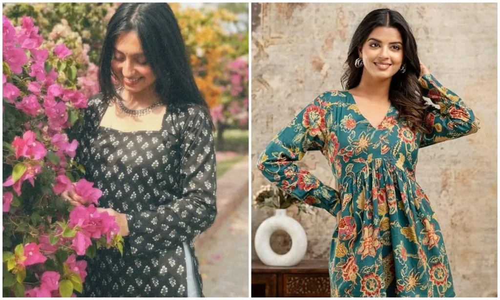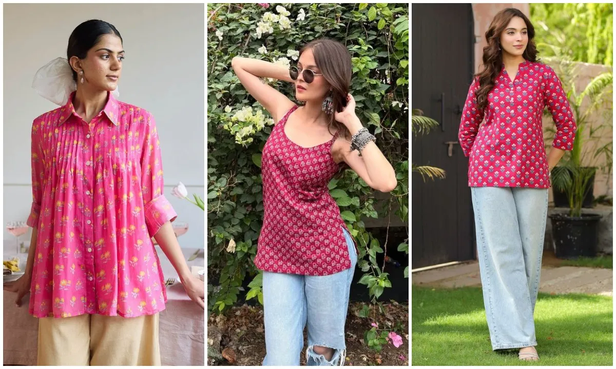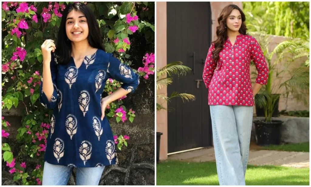 राजस्थानी या गुजराती ब्लॉक प्रिंट शॉर्ट कुर्तियां आजकल फिर से ट्रेंड में हैं. ये न सिर्फ आपको ट्रेडिशनल लुक देती हैं, बल्कि मॉडर्न टच के साथ ट्रेंडी भी दिखाती हैं. इन्हें आप झुमकी और कोल्हापुरी चप्पल के साथ स्टाइल कर सकती हैं.