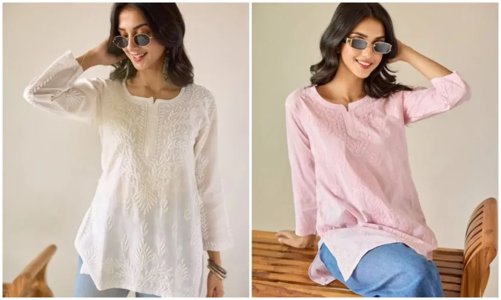 प्योर व्हाइट लखनवी चिकनकारी कुर्तियां गर्मियों में खूब पसंद की जाती हैं. ये सिंपल कुर्तियां बहुत ही एलिगेंट लुक देती हैं. आप इन खूबसूरत कुर्तियों को सिल्वर झुमकों और जूतियों के साथ पहनकर परफेक्ट दिख सकती हैं.