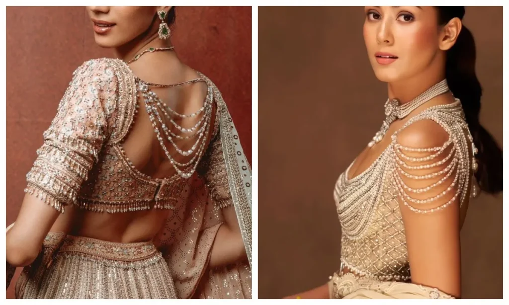 मोती की चेन से बनी डोरी बहुत ही एलिगेंट और ग्रेसफुल लुक देती है. इसे आप सिल्क साड़ी के ब्लाउज़ या फिर हैवी लहंगे के साथ स्टाइल करवा सकती हैं, इससे आपका लुक और निखर जाएगा.