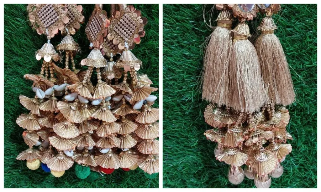 अगर आप चाहती हैं कि आपकी डोरी भी आउटफिट का खास हिस्सा लगे, तो गोटा पट्टी वाली डोरी लटकन जरूर ट्राई करें. ये आपके ट्रेडिशनल लुक में मॉडर्न टच एड कर सकती है.