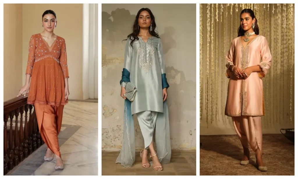 अगर आप भी इंडो वेस्टर्न का परफेक्ट कॉम्बो चाहती हैं, या कुछ हटकर ट्राई करना चाहती हैं, तो धोती पैंट्स आपके लिए बेस्ट हैं. इन्हें शॉर्ट कुर्ते के साथ पहनें और अपने ट्रेडिशनल लुक को खूबसूरत ट्विस्ट दें.