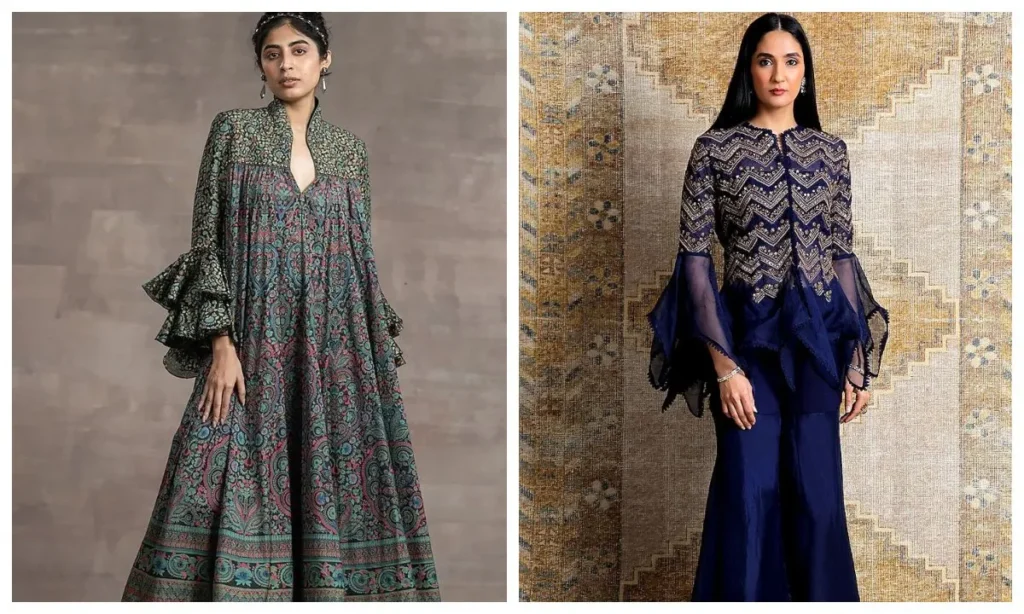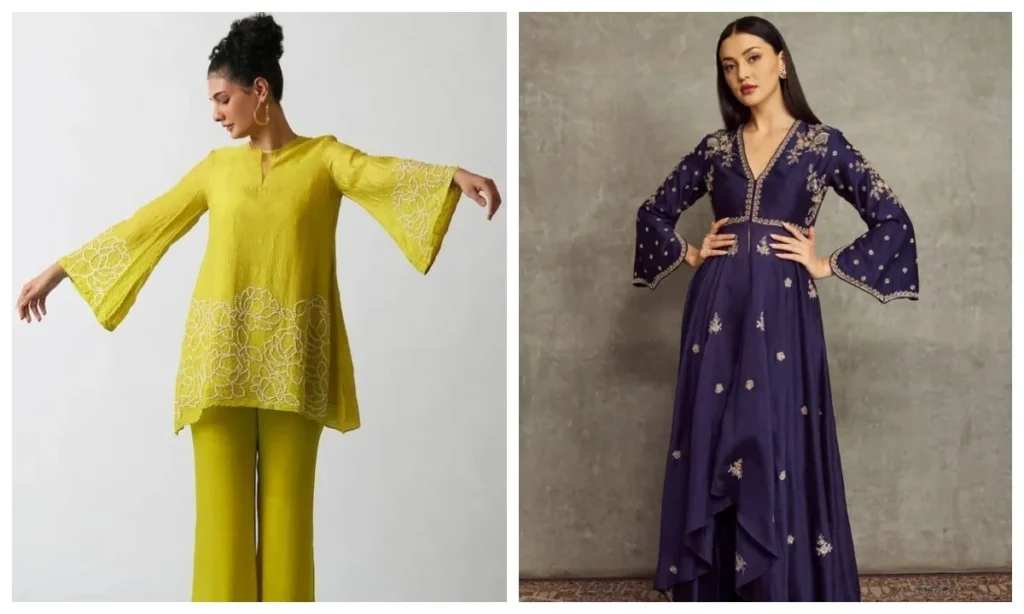 लेयर्ड रफल्स वाली स्लीव्स लाइट फ्लोई फैब्रिक पर खूब जचती हैं. ये कुर्ते को फेस्टिव और मॉडर्न दोनों तरह का फील देती हैं. समर वेडिंग्स और ब्रंच पार्टीज़ के लिए ये लुक बेहतरीन है.