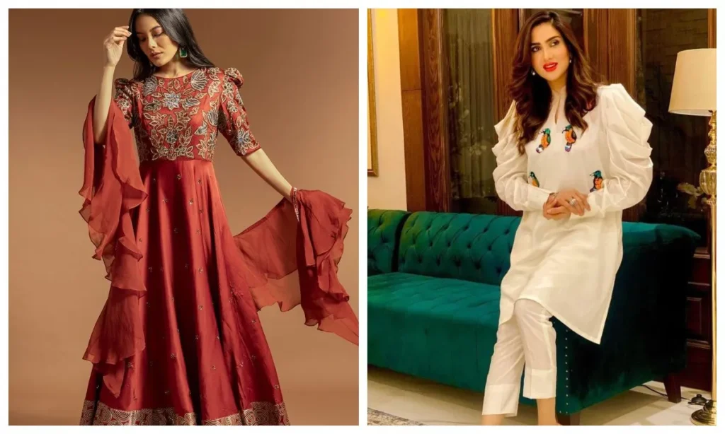 अगर आपको क्यूट, प्रिंसेस और फेमिनिन लुक पसंद है, तो पफ्ड स्लीव्स ट्राई करें. शॉर्ट कुर्ता या अनारकली स्टाइल कुर्तियों में भी ये स्लीव डिज़ाइन काफी प्यारा लगता है.