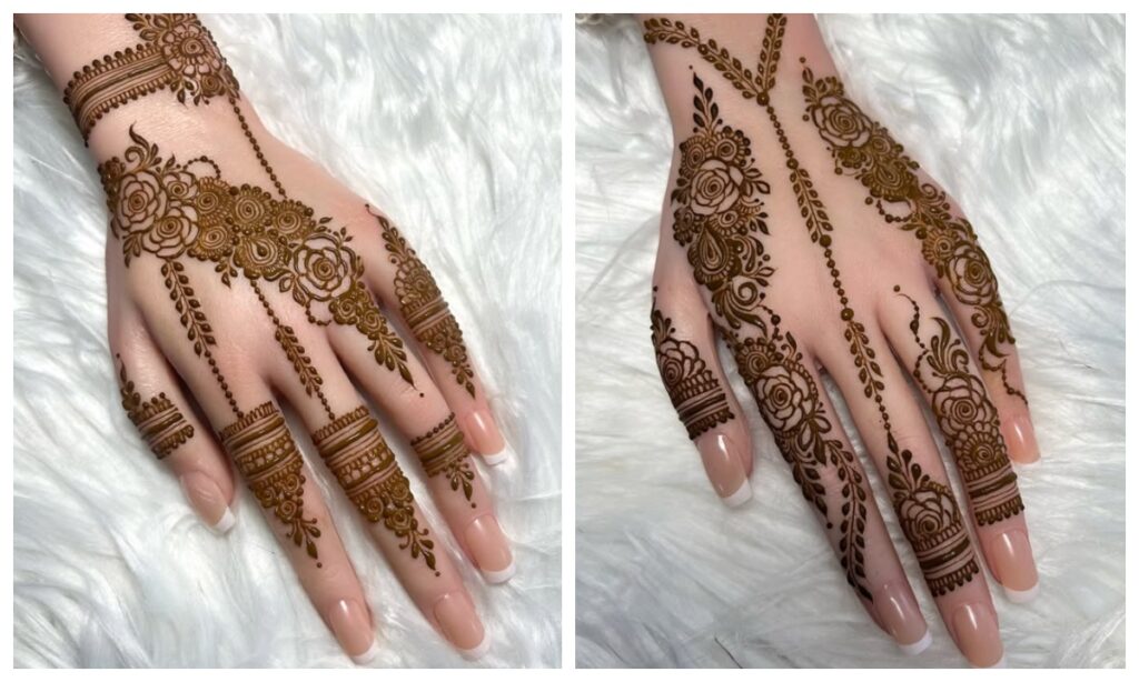 इस तरह का बैक हैंड मेहंदी डिजाइन लगवाने में ज्यादा समय भी नहीं लगता. यानी अगर आपको झटपट लगने वाला मेहंदी डिजाइन चाहिए तो इसे पैटर्न को चुन सकती हैं.