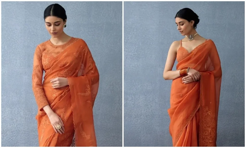 अगर आप स्वतंत्रता दिवस पर सॉफ्ट और ट्रेंडी लुक चाहती हैं, तो फिर पेस्टल ऑरेंज कलर की साड़ी पहने. ये रंग आपको फ्रेश और यूथफुल वाइब देगा. साथ ही दिन के टाइम सेलिब्रेशन के लिए परफेक्ट रहेगा.