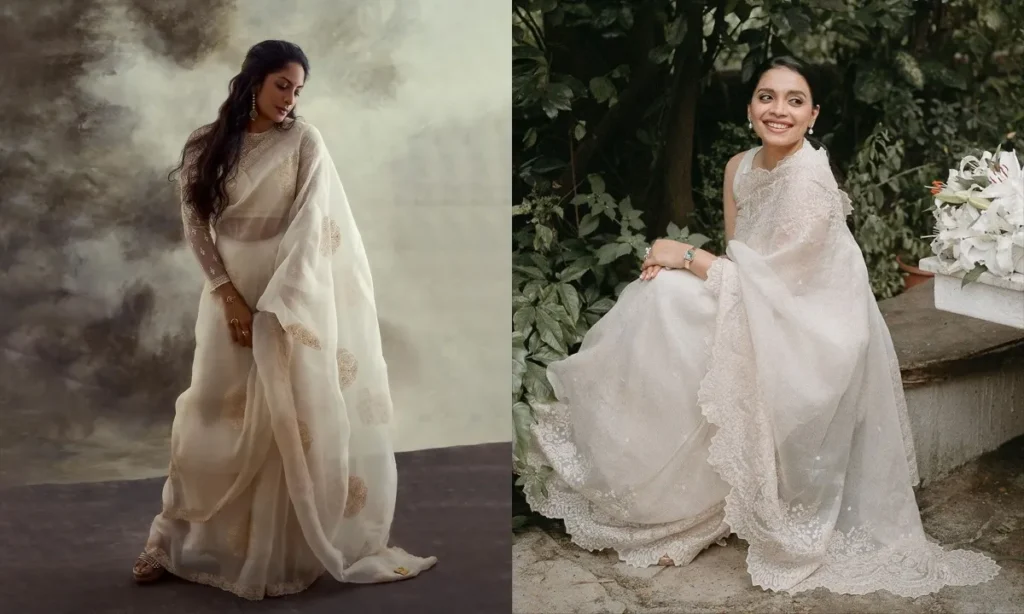 तीसरे दिन के लिए सफेद रंग से बेहतर कुछ नहीं हो सकता. एक डिजाइनर व्हाइट ऑर्गेंजा साड़ी इस दिन के लिए सबसे शानदार चॉइस है. ऑर्गेंजा सॉफ्टनेस नवरात्रि के दिन आपको क्लासी लुक देगी. इस तरह की साड़ी को आप एक मॉडर्न वी-नेक सिल्क ब्लाउज के साथ पेयर करें.