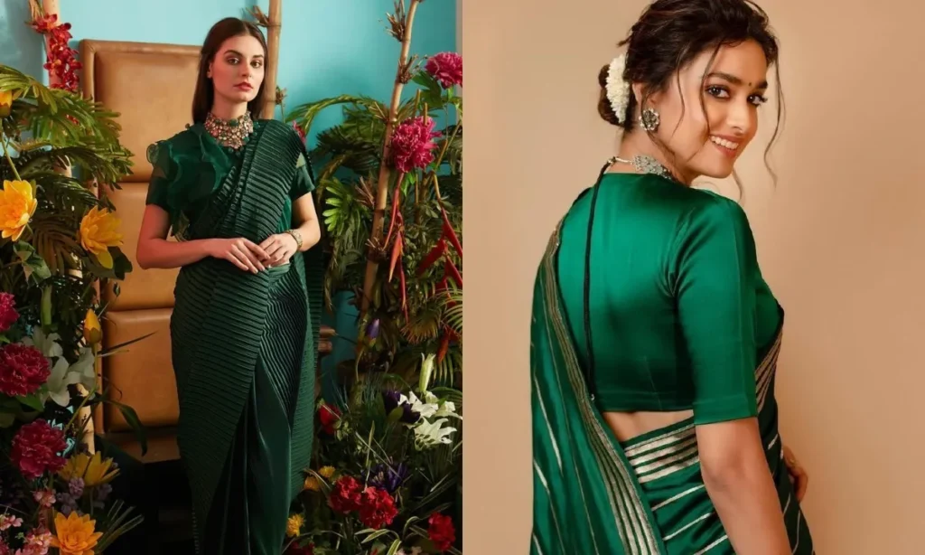 आठवें दिन के लिए पीकॉक ग्रीन कलर की साड़ी या फिर कुर्ता सेट पहन सकती हैं. ये गहरा और यूनिक कलर हर स्किन टोन पर खिलता है. एक मैटेलिक क्लच और ब्लॉक हील्स के साथ अपने इस लुक को आप आसानी से मॉडर्न टच दे सकती हैं.