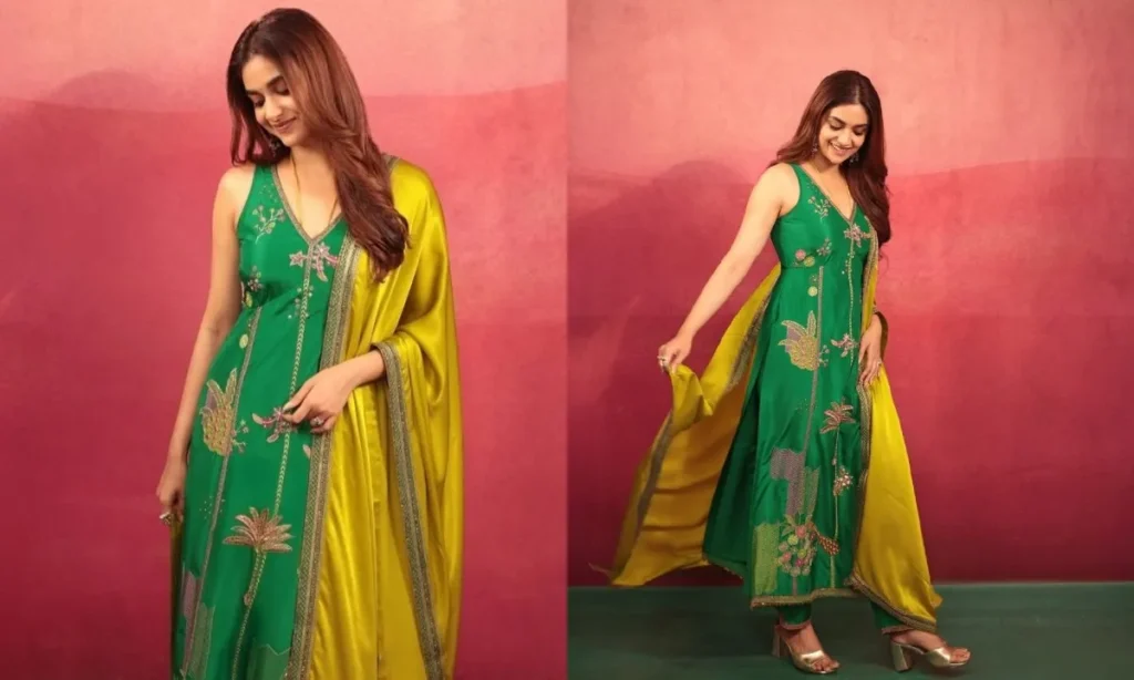 7वें दिन के लिए ग्रीन कलर का कुर्ता सेट पहन सकती हैं. ये रंग वसंत के आने और नई शुरुआत का सिंबल है. लाइटवेट कुर्ता सेट आपको हैवी फील नहीं कराएगा बल्कि एक वॉल्यूमिनस लुक देगा. आप इस फ्रेश लुक के साथ एमराल्ड झुमके पहनें और बालों को हल्का वेवी स्टाइल दें.