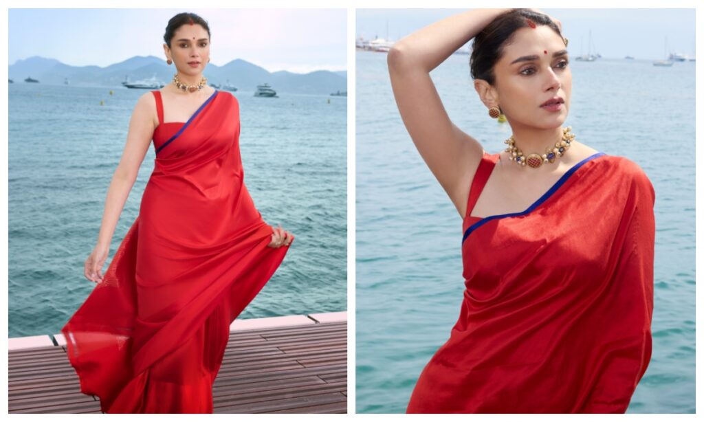 लाल रंग की प्लेन साड़ी पहनकर अदिति राव हैदरी ने कान्स फिल्म फेस्टिवल में भारतीय संस्कृति की झलक दिखाई. उन्होंने लाल रंग की साड़ी को उन्होंने चोकर हार और मैचिंग स्टड्स के साथ पेयर किया.