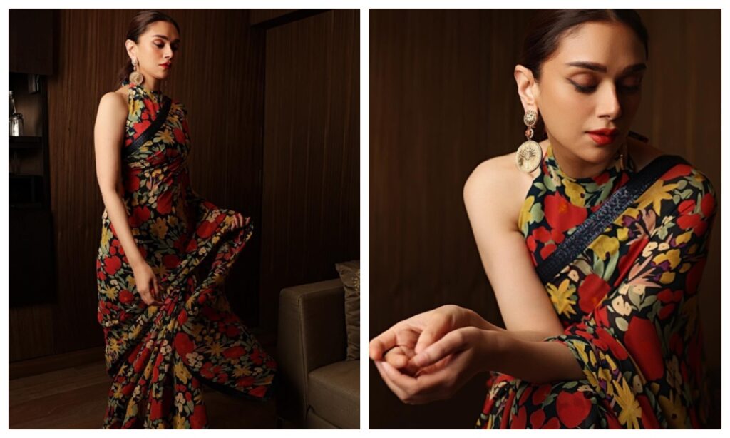 गर्मियों के लिए इस तरह की लाइटवेट फ्लोरल प्रिंट वाली साड़ियां बेस्ट रहती हैं. यहां अदिति राव हैदरी भी कलरफुल फ्लोरल प्रिंट साड़ी में कमाल लग रही हैं, जिसे उन्होंने मैचिंग हॉल्टर नेक ब्लाउज के साथ पेयर किया था.