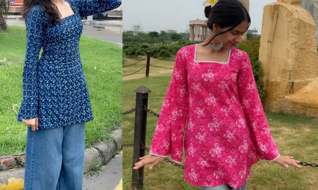 यह क्रिस-क्रॉस गले के डिजाइन वाली कुर्ती काफी बोल्ड और एस्थेटिक है. इस कुर्ती में आपकी शानदार फोटोज आएंगी. यह कुर्ती जींस पर बहुत ही सुंदर लगेगी. इसे पहनकर कॉलेज में आपका औरा जरूर बन जाएगा. आपके वॉर्डरोब में यह कुर्ती जरूर होनी चाहिए
