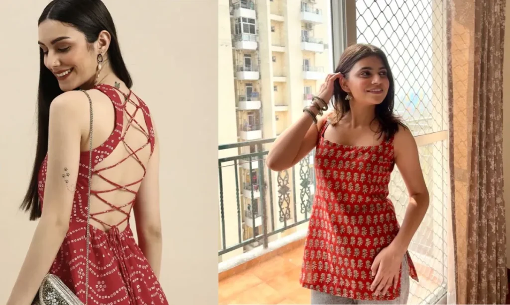 क्रिस-क्रॉस नेक डिजाइन वाली कुर्ती