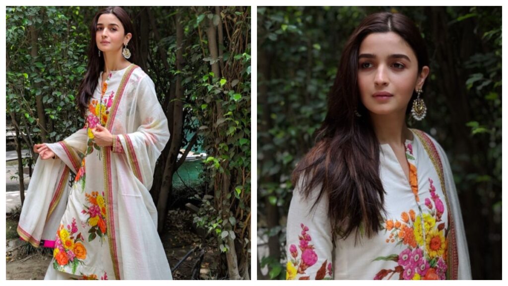 अगर आप उन लोगों में से हैं जो फैशन के मामले में सादगी पसंद करती हैं, तो आप आलिया भट्ट के शरारा सूट लुक से इन्सपिरेशन ले सकती हैं. उनका शरारा सूट सफेद कलर का था जो फ्लोरल प्रिंट का था. उन्होंने अपने लुक को सिंपल सफेद दुपट्टे से कंप्लीट किया है, जिसका बॉर्डर एक जैसा है.