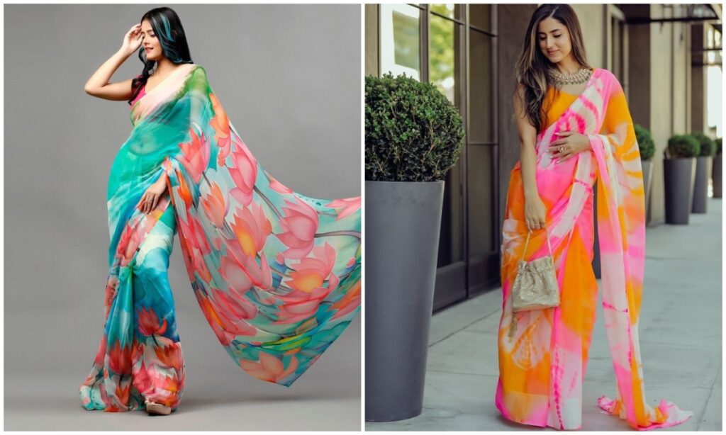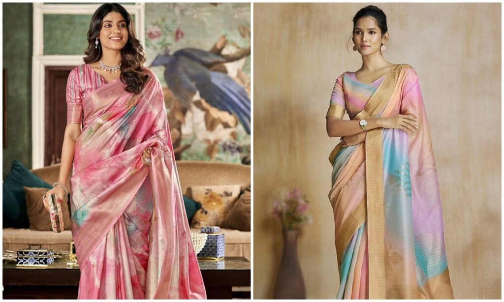 इन साड़ियों में कलरफुल डिज़ाइन डिजिटल टेक्स्चर से उभारे जाते हैं. ये प्रिंट इन साड़ियों को मॉडर्न और आर्टिस्टिक लुक देते हैं. ऑफिस पार्टी या डे टाइम फंक्शन के लिए इस तरह की साड़ियां एक बेहतरीन ऑप्शन हैं.