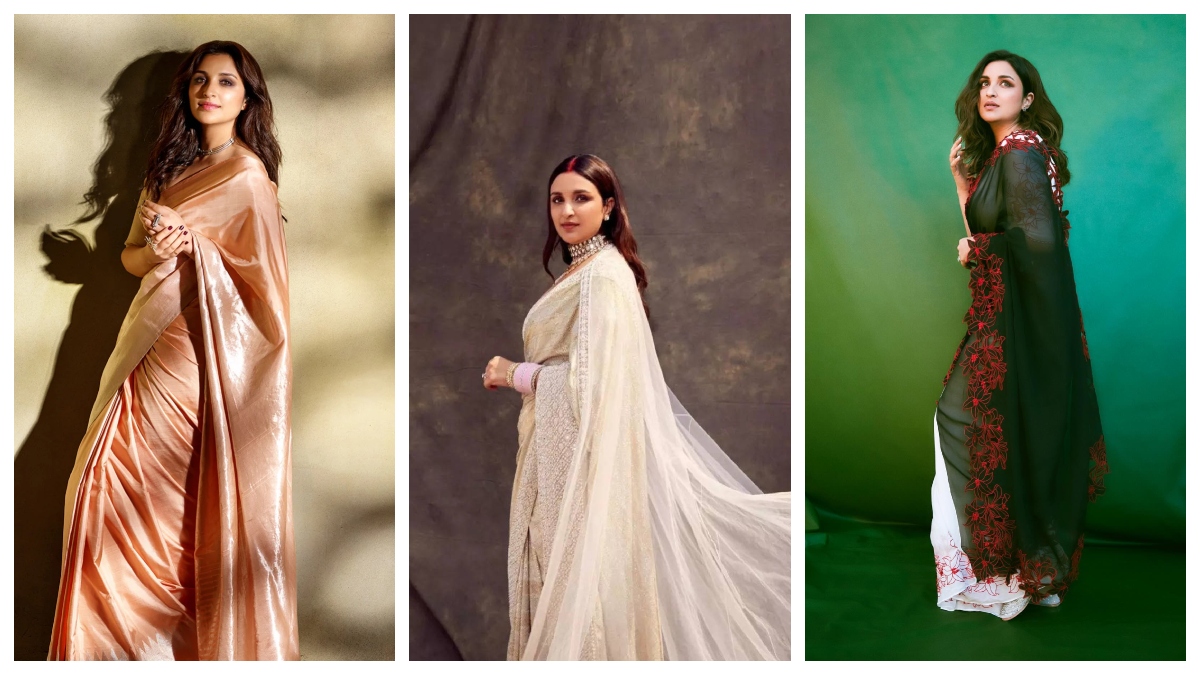 Saree Inspiration From Actor Parineeti Chopra: एक्ट्रेस परिणीति चोपड़ा, आजकल नेटफ्लिक्स पर आयी अपनी नई मूवी ‘अमर सिंह चमकीला’ के प्रमोशन में काफी बिजी हैं. परिणीति ने अपनी स्टाइल और फैशन से फैंस को दीवाना बनाने में कोई कसर नहीं छोड़ी है. एक्ट्रेस सोशल मीडिया पर काफी एक्टिव रहती है और आए दिन फैंस के साथ अपनी लुक को शेयर करती रहती हैं. आइे देखते हैं एक्ट्रेस परिणीति चोपड़ा के कुछ शानदार साड़ी लुक्स.