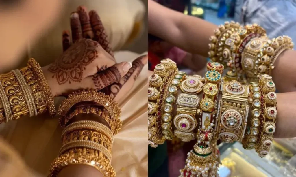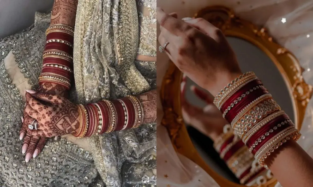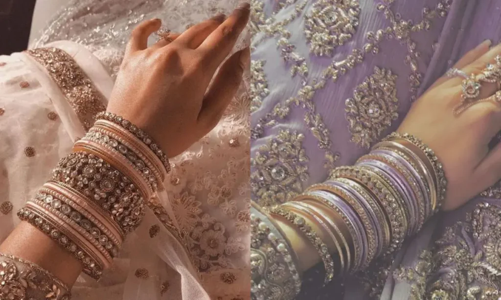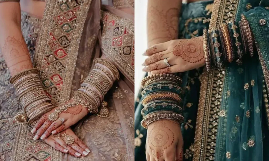 नग लगी चूड़ियां भी महिलाओं को खूब पसंद आती हैं. नग वाली चूड़ियां साड़ी या लहंगे के साथ कमाल की लगती हैं. ये आपके लुक को ट्रेडिशनल बना देती हैं और बहुत रॉयल लगती हैं.
