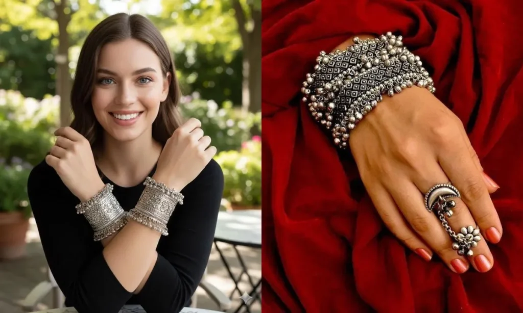 इन दिनों सिल्वर घुंघरू वाले कड़े और बैंगल्स भी काफी ट्रेंड में हैं. आप प्लेन चूड़ियों के साथ इन्हें आसानी से पेयर कर सकती हैं. इस तरह के बैंगल सेट आपके सिंपल आउटफिट को भी एलिगेंट स्टाइल दे सकते हैं.