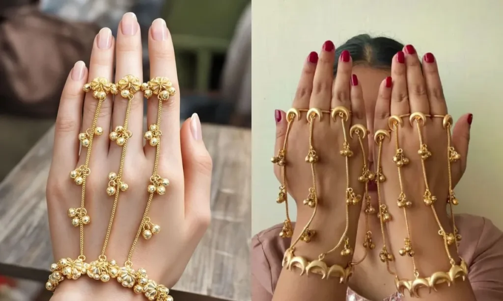 पहले की तरह अब हाथ फूल जूलरी सिर्फ दुल्हन के लिए ही नहीं हैं. अब यंग लड़कियां भी इन्हें अपने जूलरी कलेक्शन में शामिल कर रही हैं. एलिगेंट और रॉयल लुक के लिए आप भी अपने इंडियन वियर के साथ इस तरह के घुंघरू वाले हाथ फूल पहन सकती हैं.