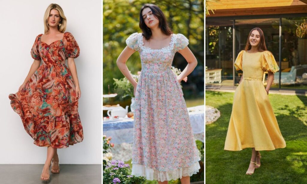 अगर आप ट्रेंडी और बोल्ड लुक चाहती हैं तो पफ स्लीव्स मिडी ड्रेस एक दमदार ऑप्शन है. इसमें आपको वॉल्यूमिनस स्लीव्स और फिटिंग बॉडी ड्रेस का कॉम्बिनेशन मिलता है, जो लुक को फैशनेबल बनाता है. पार्टीज, कॉकटेल या बर्थडे सेलिब्रेशन के लिए यह ड्रेस शानदार चॉइस है. सिंपल ब्लॉक हील्स पहनें, छोटे स्टड ईयरिंग्स के साथ नो-मेसे मेकअप लुक अपनाएं.