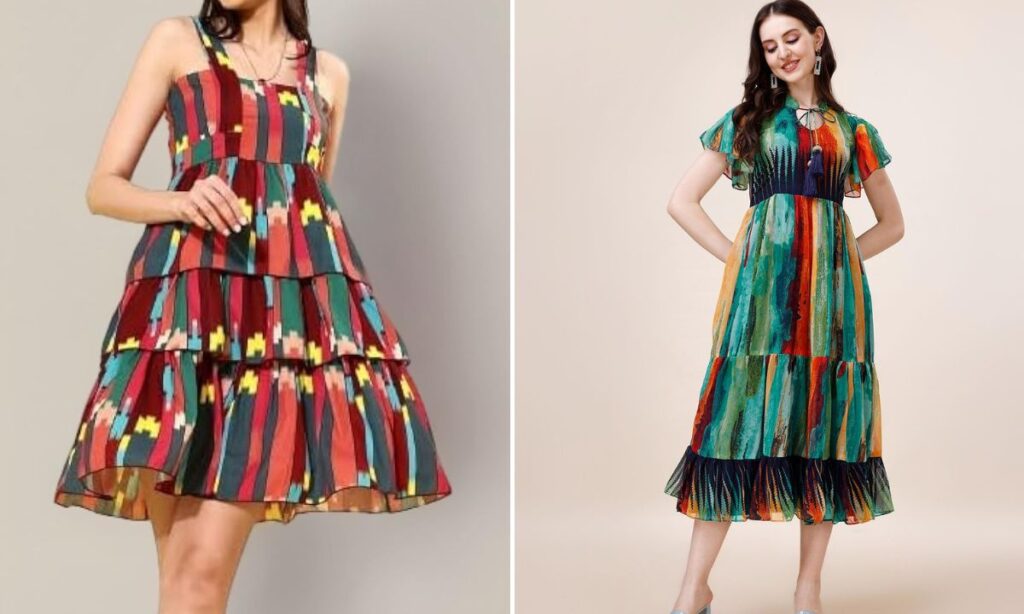 अगर आप मिडी ड्रेस में थोड़ा फ्यूजन टच चाहती हैं, तो लेयर्ड मिडी ड्रेस ट्राय करें. इसमें श्रग मल्टी लेयर या एसिमेट्रिक पैटर्न में आता है जो लुक को काफी रिच बनाता है. यह ड्रेस नाइट पार्टी या आउटडोर इवेंट्स के लिए शानदार है. हैंडबैग, स्टिलेटोज और स्टेटमेंट रिंग के साथ इस ड्रेस को कंप्लीट करें.