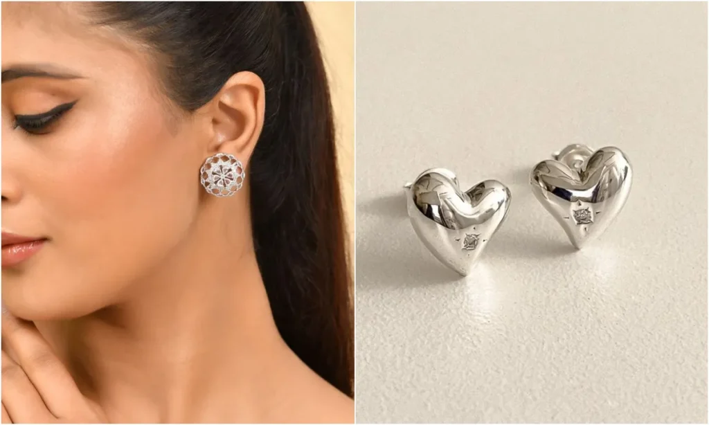 सबसे सिंपल, सबसे सेफ और एलीगेंट ऑप्शन है सिल्वर स्टड्स का. सिल्वर स्टड्स ऑफिस, कॉलेज या घर, हर जगह कमाल दिखते हैं. लाइटवेट और हर आउटफिट के साथ मैच होने वाले ये स्टड्स आपके जूलरी कलेक्शन में जरूर होने चाहिए.
