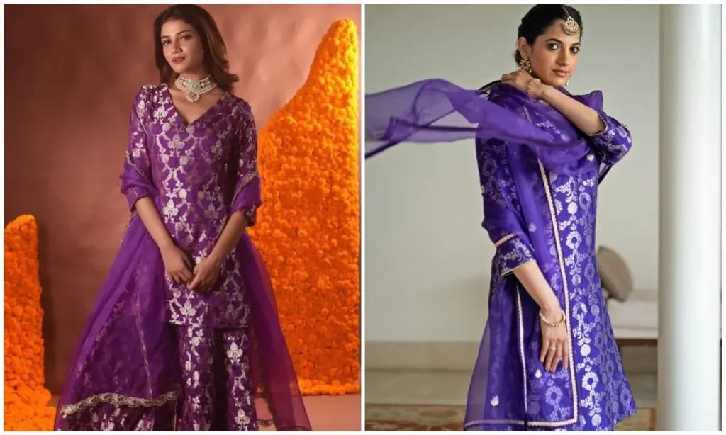 त्योहारों में थोड़ा रॉयल लुक तो बनता है. यही वजह है कि लड़कियां फेस्टिव सीजन के लिए बनारसी सूटों को भी खूब पसंद करती हैं. ये सूट अपनी ब्राइटनेस और क्लासिक अपील के लिए जाने जाते हैं. गोल्डन ज्वेलरी और परफेक्ट हेयरस्टाइल के साथ आप भी इस सूट में ट्रेडिशनल स्टेटमेंट क्रिएट कर सकती हैं.