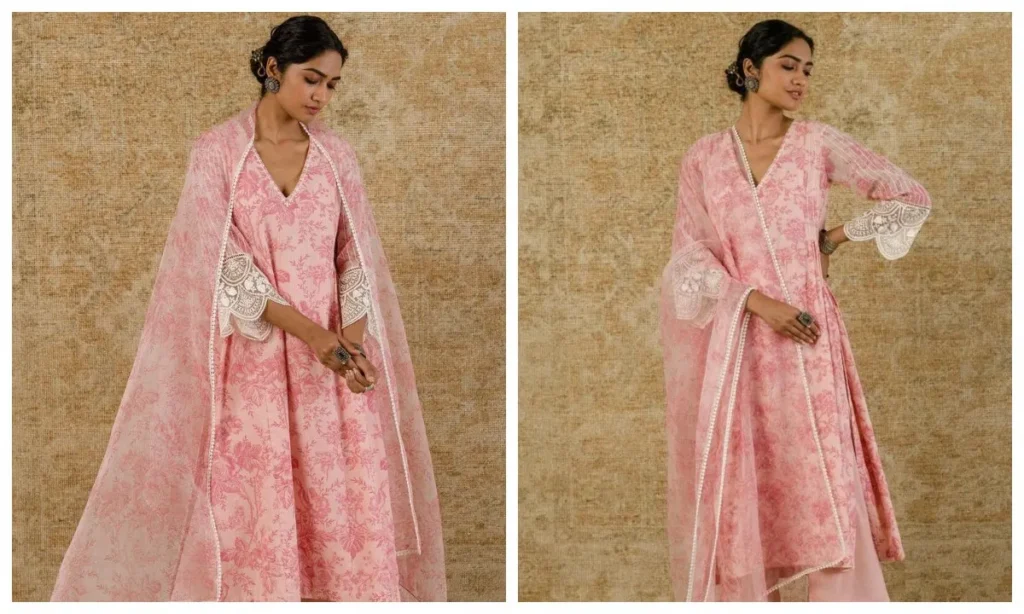 पेस्टल शेड्स हमेशा ही आंखों को सुकून देते हैं. लाइट पिंग कलर का फ्लोरल कुर्ता सेट दिनभर पहनने के लिए बेस्ट है. आप इसे स्ट्रेट पैंट्स और मैचिंग दुपट्टे के साथ पहनकर परफेक्ट फेस्टिव लुक पा सकती हैं.
