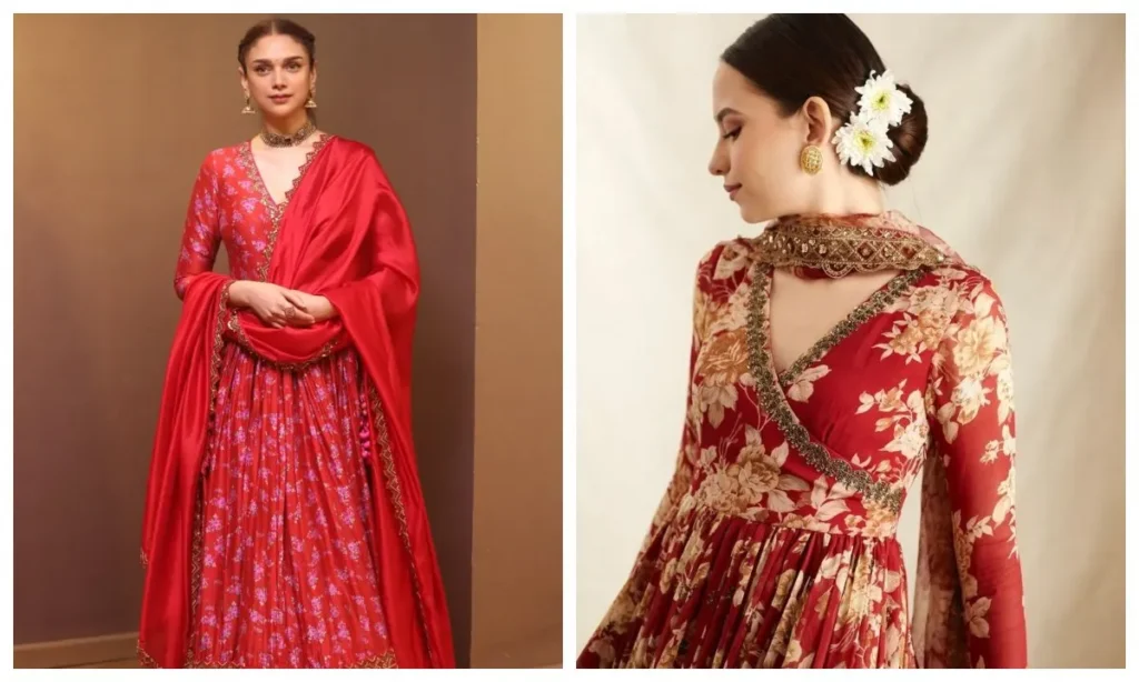 लाल कलर का फ्लोरल कुर्ता सेट किसी भी खास मौके, जैसे करवाचौथ या दीवाली जैसे त्योहारों के लिए बेहतरीन है. गोल्डन बॉर्डर वाले दुपट्टे के साथ ये लुक और भी ग्रेसफुल लगता है. फेस्टिव सीजन के लिए आप इसे अपने वॉर्डरोब में जरूर शामिल करें.